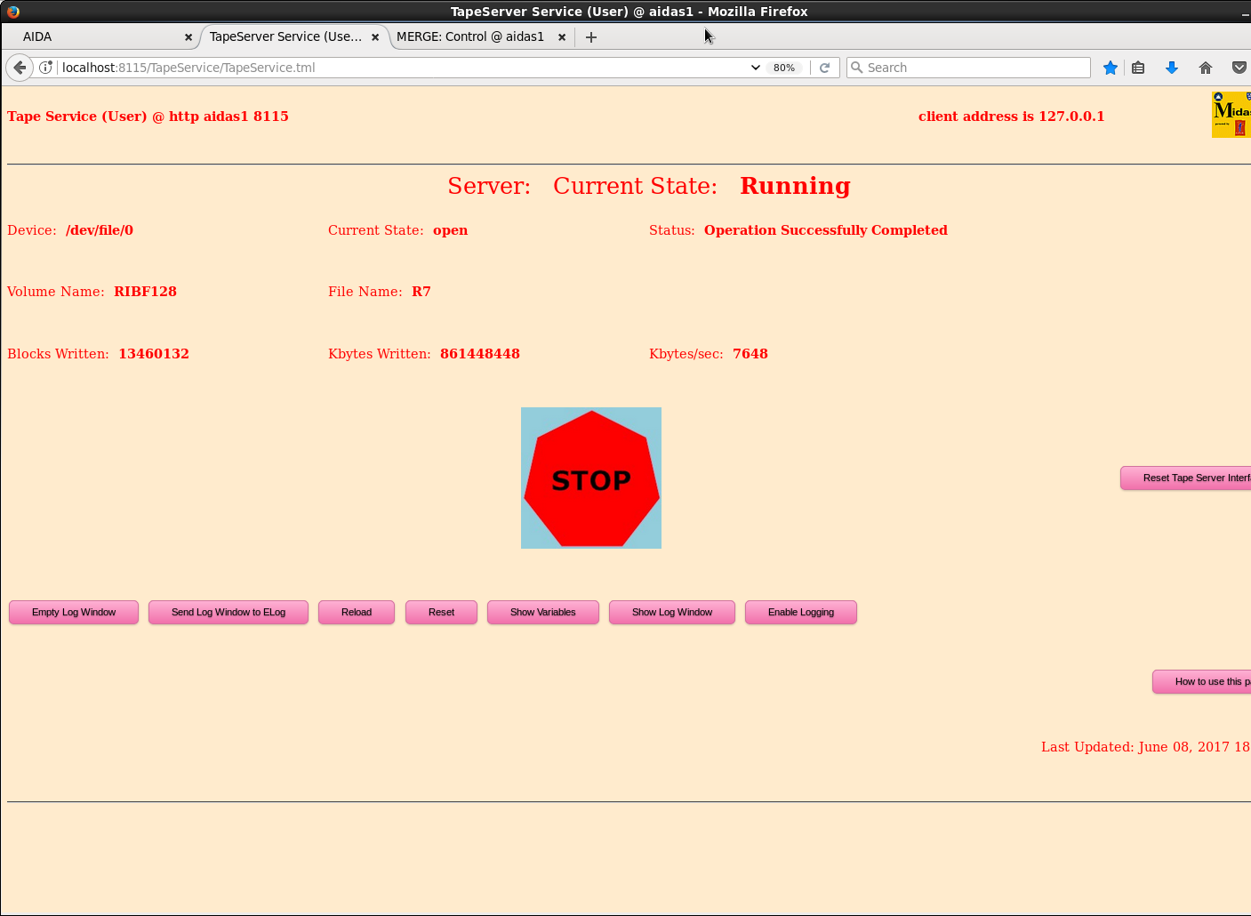 *** TDR format 3.3.0 analyser - TD - June 2017 *** MBS information: block: 8130 ptr: 7 data: 0x868200DB module: 6 information type: 8 information field: 0x000200DB ts: 0x09A7DFE6F2D4 OLD ts: 0x09A7DFE6F2D4 MBS 0x:00DB0000C18D OLD MBS 0x:00DBF6C8853F *** MBS information: block: 12589 ptr: 7 data: 0x868200DC module: 6 information type: 8 information field: 0x000200DC ts: 0x09A8C3399C08 OLD ts: 0x09A8C3399C08 MBS 0x:00DC00006BDA OLD MBS 0x:00DC2F9D9FDB *** MBS information: block: 20128 ptr: 7 data: 0x868200DC module: 6 information type: 8 information field: 0x000200DC ts: 0x09AA43B2518C OLD ts: 0x09AA43B2518C MBS 0x:00DC0000993B OLD MBS 0x:00DC8FB239F2 *** MBS information: block: 29982 ptr: 7 data: 0x868200DD module: 6 information type: 8 information field: 0x000200DD ts: 0x09AC3A09E64C OLD ts: 0x09AC3A09E64C MBS 0x:00DD00007E6B OLD MBS 0x:00DD0D54F5FC *** ERROR: READ I/O error: 5002 blocks: 32000 ADC data format: 257120934 ( 941113.6 Hz) Other data format: 3967066 ( 14520.2 Hz) Sample trace data format: 0 ( 0.0 Hz) Undefined format: 0 ( 0.0 Hz) Other data format type: PAUSE: 104 ( 0.4 Hz) RESUME: 104 ( 0.4 Hz) SYNC100: 2500352 ( 9151.8 Hz) FEE64 disc: 1426515 ( 5221.3 Hz) MBS info: 39991 ( 146.4 Hz) Other info: 0 ( 0.0 Hz) ADC data range bit set: 48894 ( 179.0 Hz) Timewarps: ADC: 0 ( 0.0 Hz) PAUSE: 0 ( 0.0 Hz) RESUME: 0 ( 0.0 Hz) SYNC100: 0 ( 0.0 Hz) FEE64 disc: 0 ( 0.0 Hz) MBS info: 0 ( 0.0 Hz) Undefined: 0 ( 0.0 Hz) Sample trace: 0 ( 0.0 Hz) *** Timestamp elapsed time: 273.209 s FEE elapsed dead time(s) elapsed idle time(s) 1 0.059 0.000 2 0.512 0.000 3 0.000 0.000 4 0.000 0.000 5 0.018 0.000 6 0.002 0.000 7 0.000 0.000 8 0.000 0.000 9 0.026 0.000 10 0.031 0.000 11 0.000 0.000 12 0.000 0.000 13 0.544 0.571 14 0.061 0.000 15 0.000 0.000 16 0.000 0.000 17 0.150 0.000 18 0.121 0.000 19 0.000 0.000 20 0.067 0.000 21 0.170 0.000 22 0.036 0.000 23 0.000 0.000 24 0.000 0.000 25 0.000 0.000 26 0.000 0.000 27 0.000 0.000 28 0.000 0.000 29 0.000 0.000 30 0.000 0.000 31 0.000 0.000 32 0.000 0.000 *** Statistics FEE ADC Data Other Data Sample Undefined Pause Resume SYNC100 Disc MBS Other HEC Data 0 0 0 0 0 0 0 0 0 0 0 0 1 18106280 163332 0 0 3 3 104189 59137 0 0 2921 2 20005684 163233 0 0 21 21 104015 59176 0 0 2783 3 7932313 115688 0 0 0 0 104207 11481 0 0 168 4 1709827 115067 0 0 0 0 104209 10858 0 0 358 5 11317851 160780 0 0 8 8 104202 56562 0 0 509 6 10601462 207561 0 0 1 1 104212 63356 39991 0 681 7 2284138 119480 0 0 0 0 104210 15270 0 0 1025 8 1762807 117727 0 0 0 0 104211 13516 0 0 663 9 13480576 259341 0 0 2 2 104199 155138 0 0 3072 10 13337524 247605 0 0 4 4 104198 143399 0 0 2501 11 2863099 121495 0 0 0 0 104209 17286 0 0 989 12 4209852 132538 0 0 0 0 104206 28332 0 0 1671 13 28566849 185526 0 0 11 11 104001 81503 0 0 1860 14 13239375 283141 0 0 7 7 104182 178945 0 0 3843 15 5842978 146867 0 0 0 0 104210 42657 0 0 3178 16 4841462 131477 0 0 0 0 104211 27266 0 0 2637 17 12028716 177984 0 0 20 20 104155 73789 0 0 637 18 15841790 176641 0 0 7 7 104169 72458 0 0 278 19 11782755 139218 0 0 0 0 104206 35012 0 0 1611 20 8898447 138520 0 0 10 10 104184 34316 0 0 3400 21 19723184 174921 0 0 5 5 104144 70767 0 0 4346 22 14214726 199630 0 0 5 5 104200 95420 0 0 3786 23 7640468 145575 0 0 0 0 104211 41364 0 0 2966 24 6888771 143719 0 0 0 0 104212 39507 0 0 3011 25 0 0 0 0 0 0 0 0 0 0 0 26 0 0 0 0 0 0 0 0 0 0 0 27 0 0 0 0 0 0 0 0 0 0 0 28 0 0 0 0 0 0 0 0 0 0 0 29 0 0 0 0 0 0 0 0 0 0 0 30 0 0 0 0 0 0 0 0 0 0 0 31 0 0 0 0 0 0 0 0 0 0 0 32 0 0 0 0 0 0 0 0 0 0 0 *** Timewarps FEE ADC Pause Resume SYNC100 Disc MBS Undefined Samples 0 0 0 0 0 0 0 0 0 1 0 0 0 0 0 0 0 0 2 0 0 0 0 0 0 0 0 3 0 0 0 0 0 0 0 0 4 0 0 0 0 0 0 0 0 5 0 0 0 0 0 0 0 0 6 0 0 0 0 0 0 0 0 7 0 0 0 0 0 0 0 0 8 0 0 0 0 0 0 0 0 9 0 0 0 0 0 0 0 0 10 0 0 0 0 0 0 0 0 11 0 0 0 0 0 0 0 0 12 0 0 0 0 0 0 0 0 13 0 0 0 0 0 0 0 0 14 0 0 0 0 0 0 0 0 15 0 0 0 0 0 0 0 0 16 0 0 0 0 0 0 0 0 17 0 0 0 0 0 0 0 0 18 0 0 0 0 0 0 0 0 19 0 0 0 0 0 0 0 0 20 0 0 0 0 0 0 0 0 21 0 0 0 0 0 0 0 0 22 0 0 0 0 0 0 0 0 23 0 0 0 0 0 0 0 0 24 0 0 0 0 0 0 0 0 25 0 0 0 0 0 0 0 0 26 0 0 0 0 0 0 0 0 27 0 0 0 0 0 0 0 0 28 0 0 0 0 0 0 0 0 29 0 0 0 0 0 0 0 0 30 0 0 0 0 0 0 0 0 31 0 0 0 0 0 0 0 0 32 0 0 0 0 0 0 0 0 *** MBS Timewarps FEE 0 0 1 0 2 0 3 0 4 0 5 0 6 4 7 0 8 0 9 0 10 0 11 0 12 0 13 0 14 0 15 0 16 0 17 0 18 0 19 0 20 0 21 0 22 0 23 0 24 0 25 0 26 0 27 0 28 0 29 0 30 0 31 0 32 0 *** Program elapsed time: 34.629s ( 924.083 blocks/s, 57.755 Mb/s)