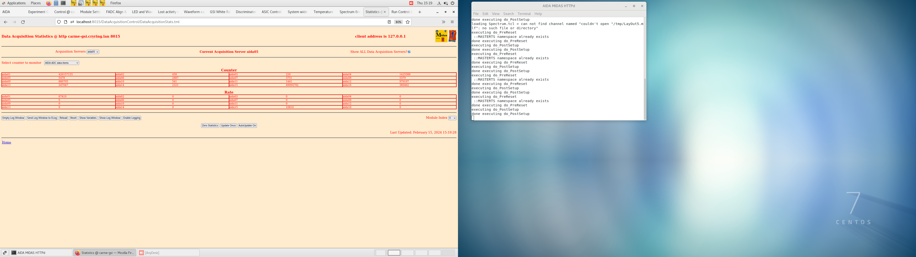 <p>Run started 13:40</p> <p>Target density 4.3e11, Beam injection is ~1e7, Pressure in the ring is ~1e-10 mbar.</p> <p>Detectors have been moved IN with servo motors only (left arm pot = 36.5 mm, right arm pot =37.7 mm</p> <p>Time between injections is 12 seconds. Beam is in the ring for 3 seconds of the cycle.</p> <p>System wide checks OK</p> <p>Temperatures OK</p> <p>Leakage current plot attached -> temperature fluctuations (attachment 1)</p> <p>ADC data items stats (attachment 2)</p> <p>Merger and tape server OK</p> <p>All histograms and statistics zero'd</p> <p>14:17</p> <p>Cave access required. No beam</p> <p>15:24</p> <p>No beam. System wide checks ok. Merger ok.</p> <p>Attatchment 3: stats</p> <p>Attatchment 4: Temperatures generally okay, 3 were red before reload, one red after reload.</p> <p>Attatchment 5-8: Waveforms. Layout 7 and 8 look different from yesterday, consistnely different after several reloads.</p> <p>Attatchment 9: Leakage current</p> <p>Attatchment 10: LOWENERGYEXEY PLOTS</p> <p>17:12</p> <p>Tunning beam. System wide checks ok. Merger ok.</p> <p>Attatchment 11: stats</p> <p>Attatchment 12: Temperatures generally okay, 3 were red reloaed and stayed red but not so high.</p> <p>Attatchment 13-16: Waveforms. Were the same as previous check.</p> <p>Attatchment 17: Leakage current. They are tunning the beam so its a little bit changed.</p> <p>19:28</p> <p>Still hvae unstable noncooled beam, currently being worked on.</p> <p>Tunning beam. System wide checks ok. Merger ok.</p> <p>Attatchment 18: Temperatures generally okay, 3 were red reloaed and stayed red but not so high and were slighlty dicrease.</p> <p>Attatchment 19-22: Waveforms. Were the same as previous check.</p> <p>Attatchment 23: Leakage current. Slowly increasing from last check in, highest its been but conditions are not great at the moment.</p> <p>21:10</p> <p>We did not have any update about the beam. They still work on it.</p> <p>Tunning beam. System wide checks ok. Merger ok. Stats were ok.</p> <p>Attatchment 24: Temperatures generally okay, Same 3 were red and they increased a little bit. Nothing too concerning.</p> <p>Attatchment 25-28: Waveforms. Were the same as previous check.</p> <p>Attatchment 29: Leakage current. Contining to increase by small amount from last check.</p> <p> </p> <p> </p> <p> </p> <p> </p>