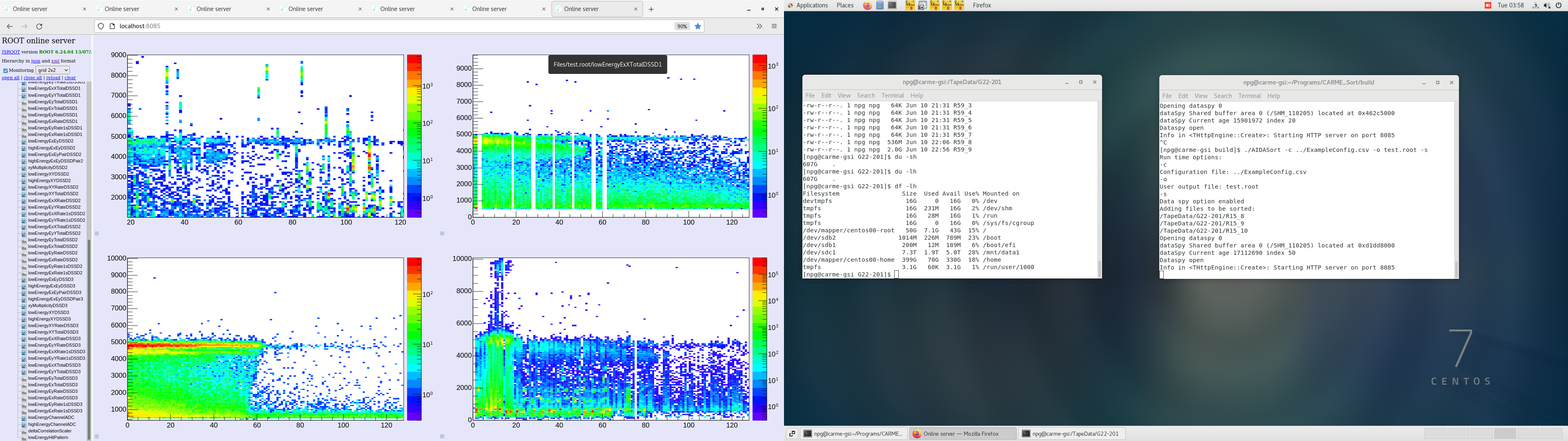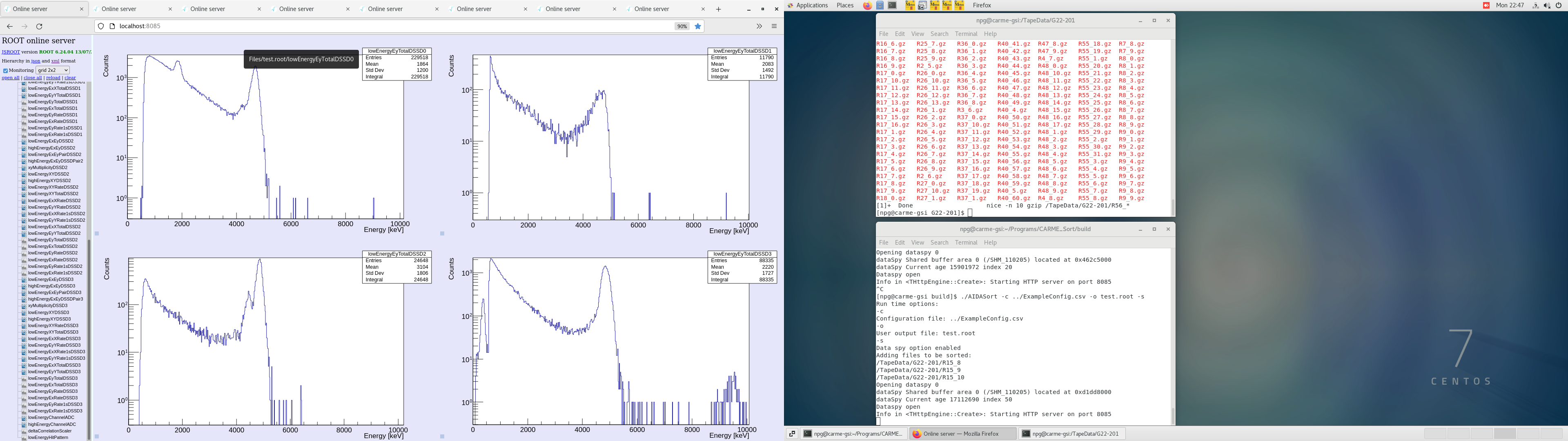 Detector 0 shows noise. Shook twice with servo. No result. Shook with pneumatic. Fixed. Some beam instabilities again.