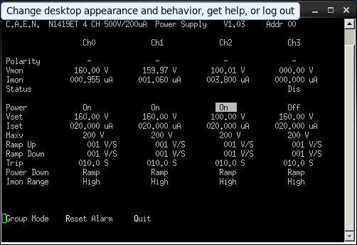 Attachment 1 - layout 2 - stat spectra Attachment 2 - detector biases & leakage currents - OK Attachment 3 - FEE64 temperatures - OK Attachments 4-7 - TapeServer, Merger, Merger Statistics, good event statistics - OK 10:40 ASIC check load x2 13.12 DAQ stopped c. 10.50 unable to connect messages for multiple FEE64s After lunch powwer-cycled FEE64s and restarted DAQ aida03 crashed (see https://elog.ph.ed.ac.uk/DESPEC/131 ) and rebooted by issuing reboot command as root Data file 20FEB20/R1 ASIC settings 2019Oct31-13.24.23 slow comparator 0xa -> 0x64 BNC PB-5 pulser OFF continue alpha background run