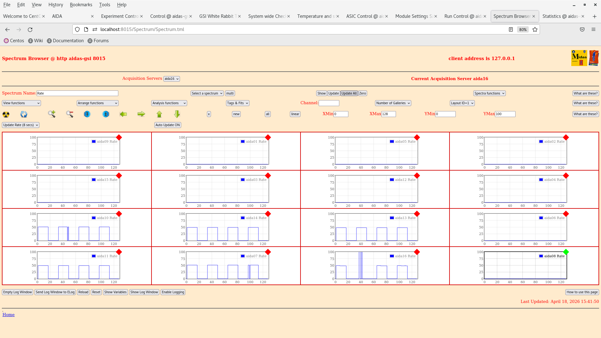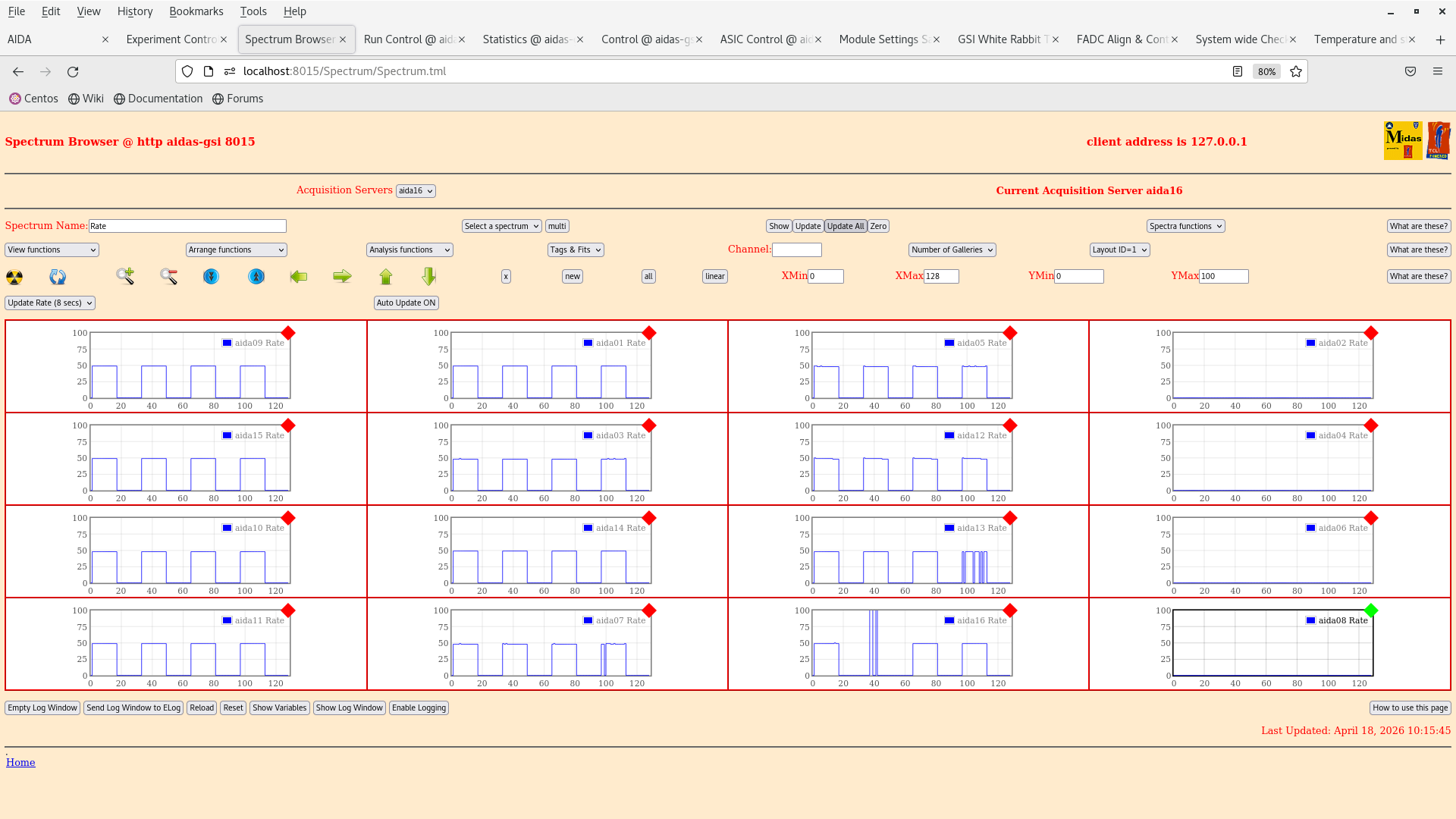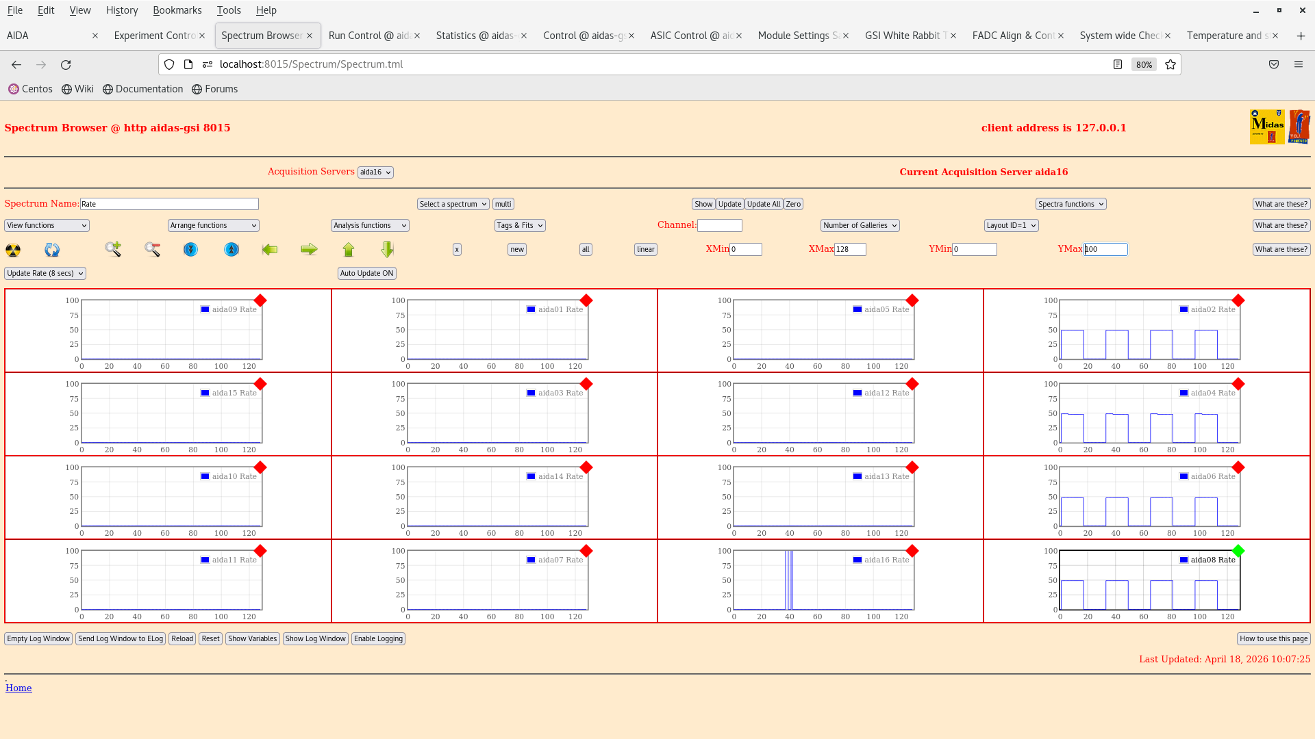 Note aida01 - aida04 show rates expected, all other FEE64s show very rates due to noise
