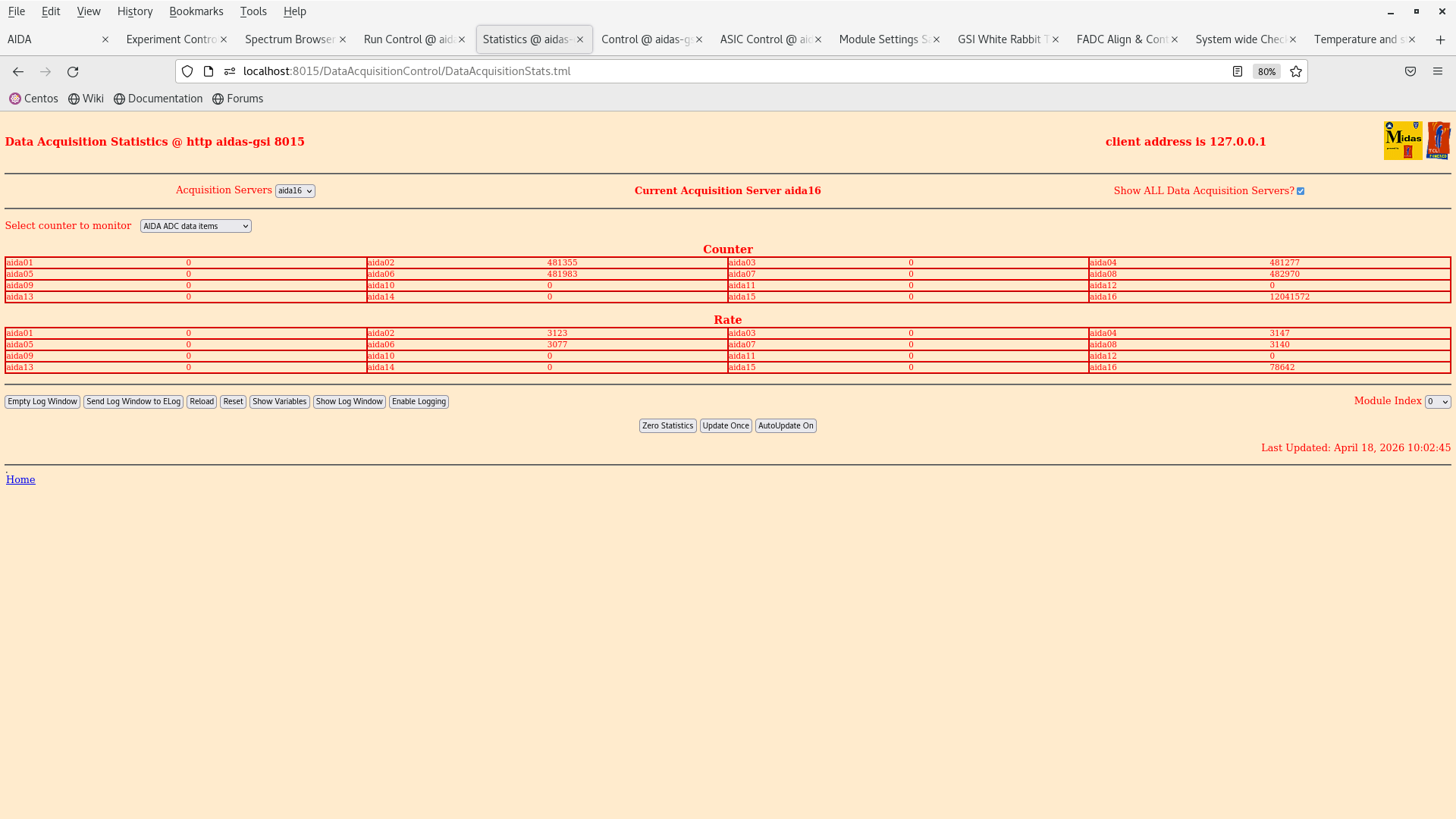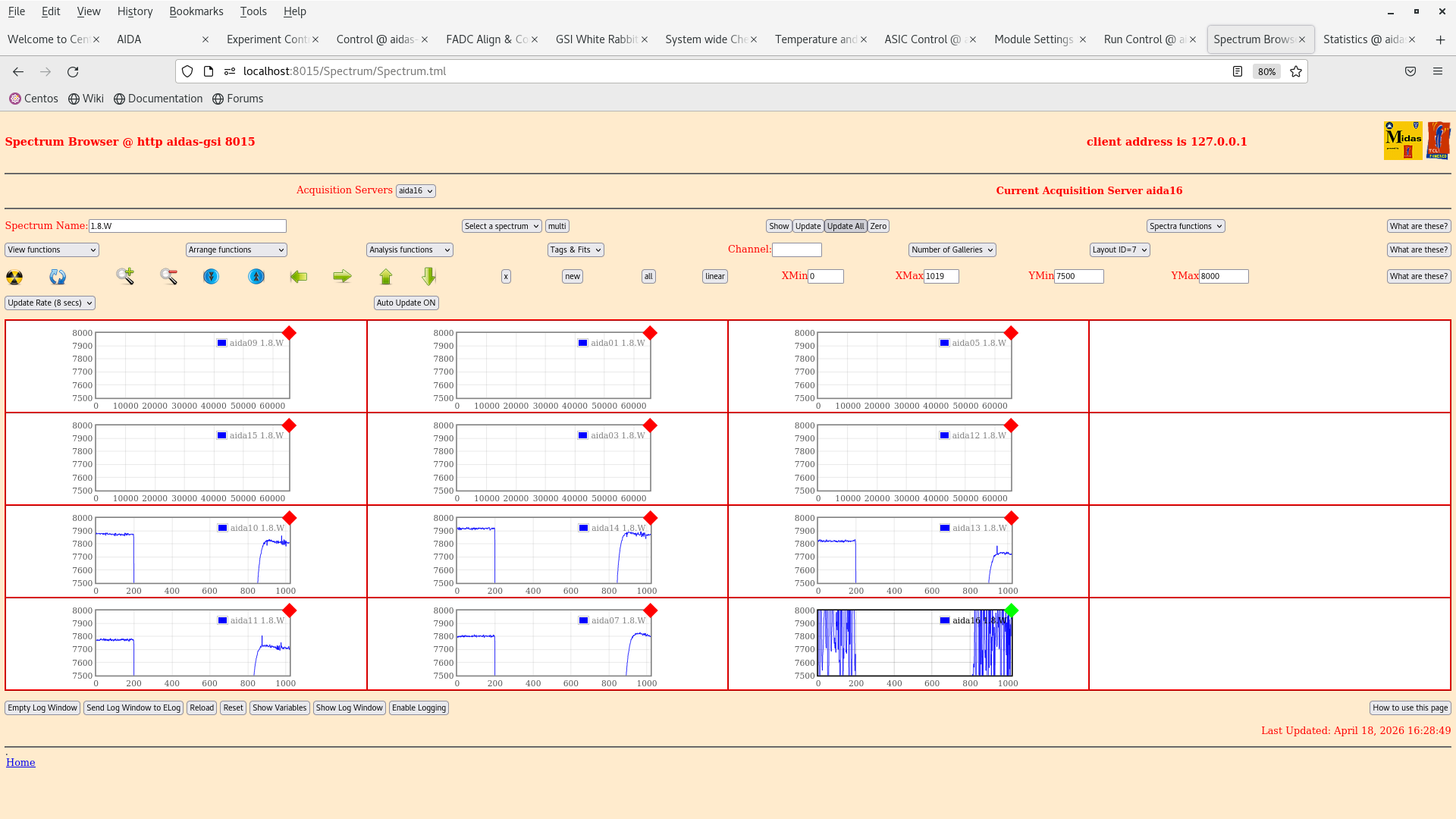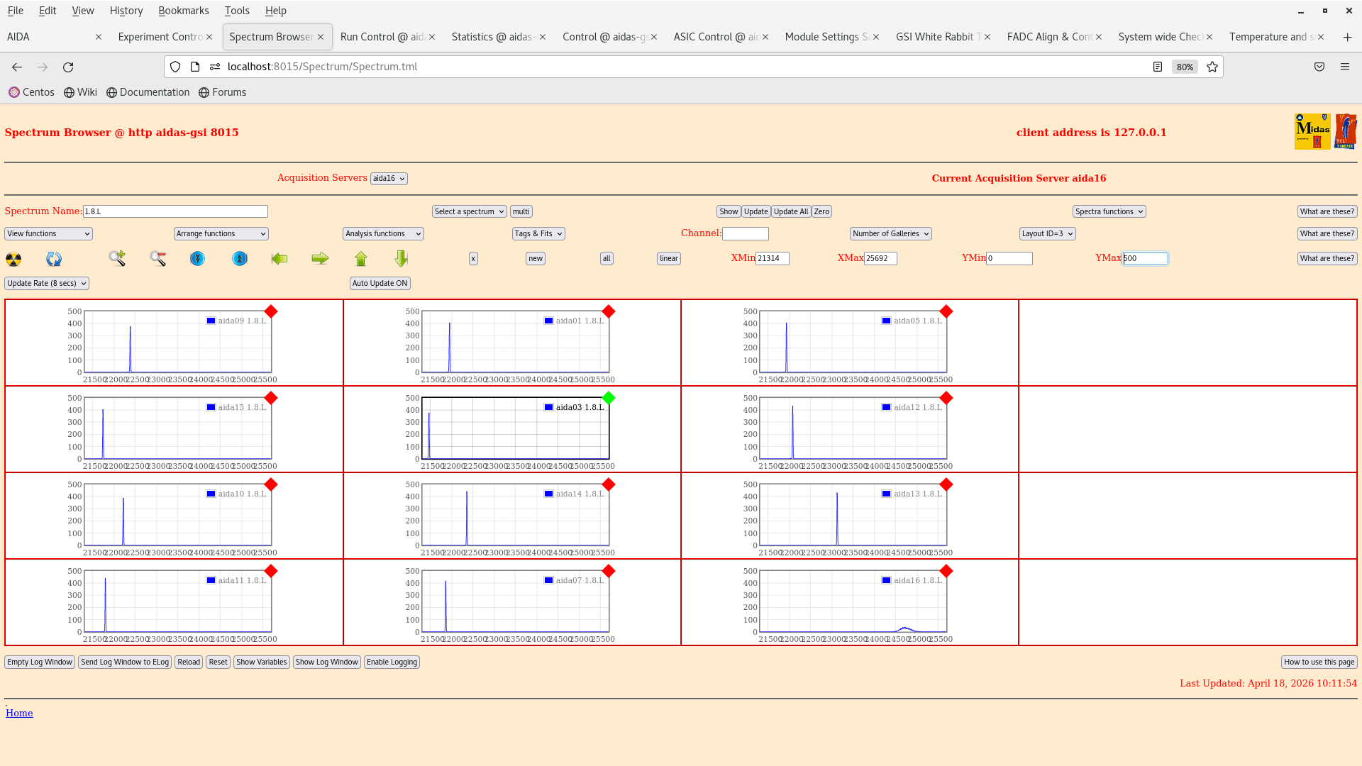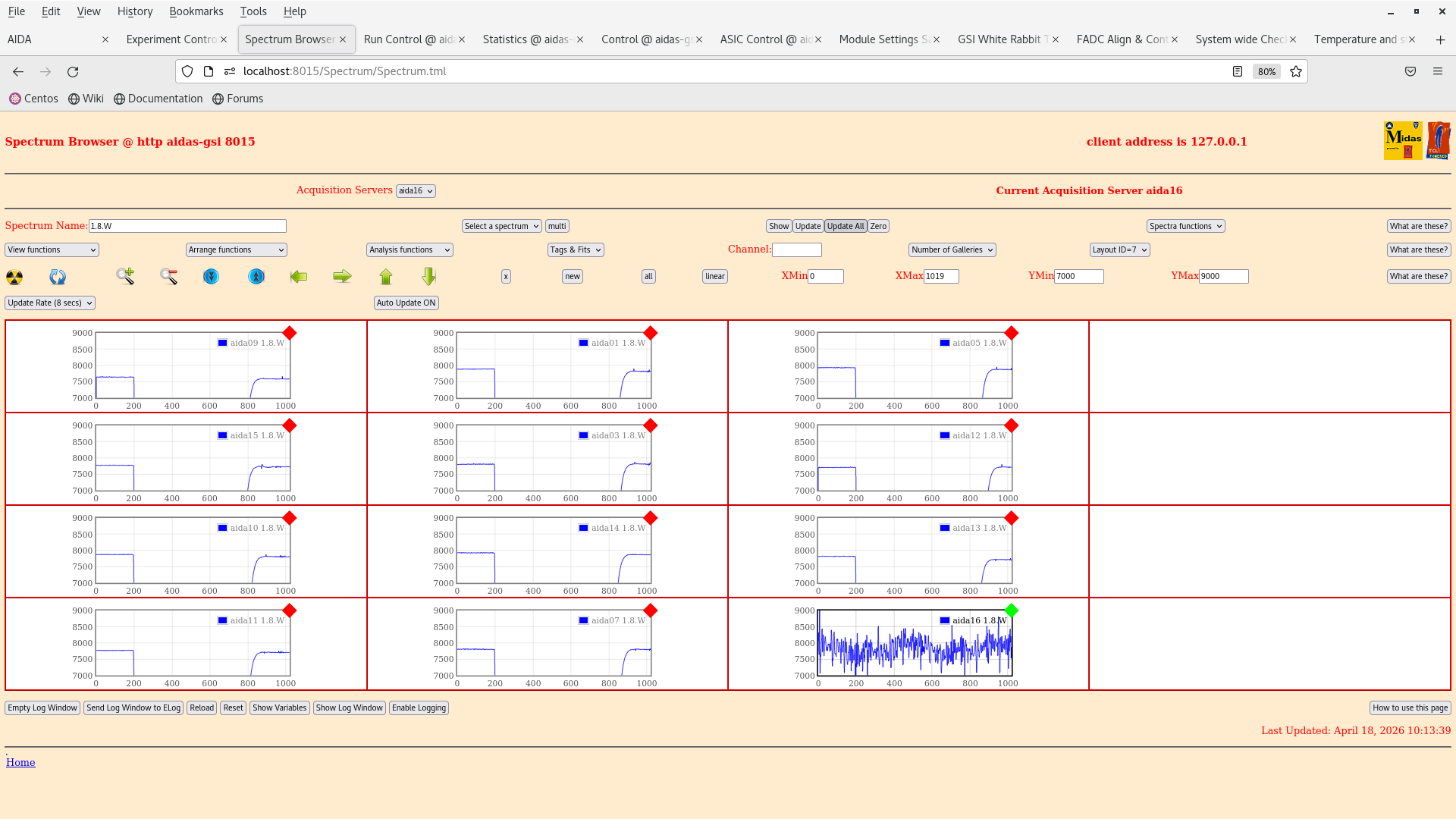 Note aida01 - aida04 show rates expected, all other FEE64s show very rates due to noise