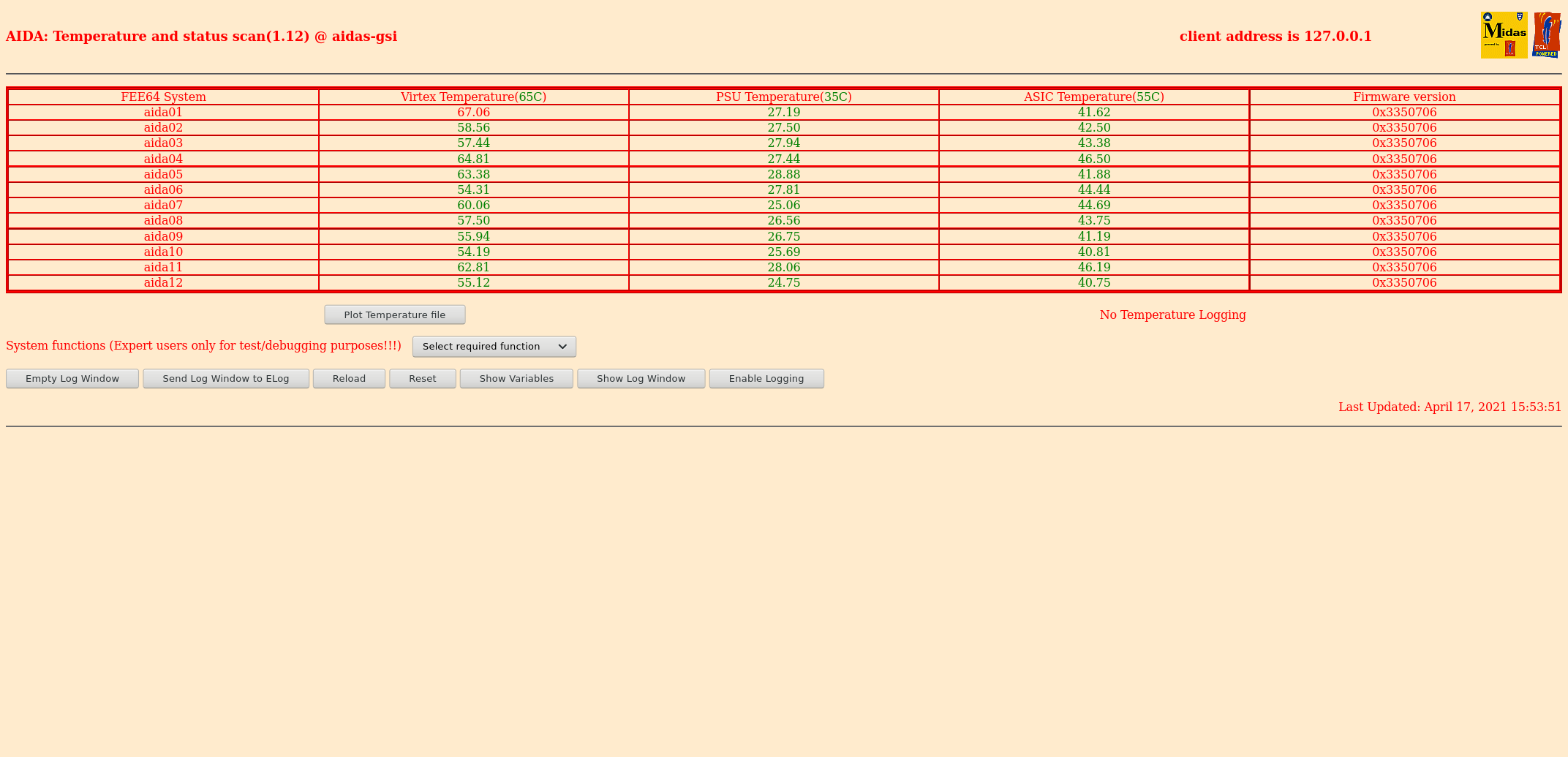 Attachment 1 - FEE64 temperatures illustrating (we assume) a faulty PSU temperature sensor for aida07