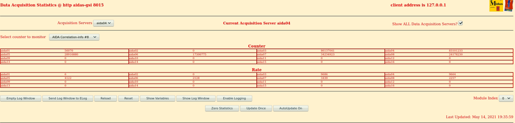 Note aida01 - aida04 show rates expected, all other FEE64s show very rates due to noise