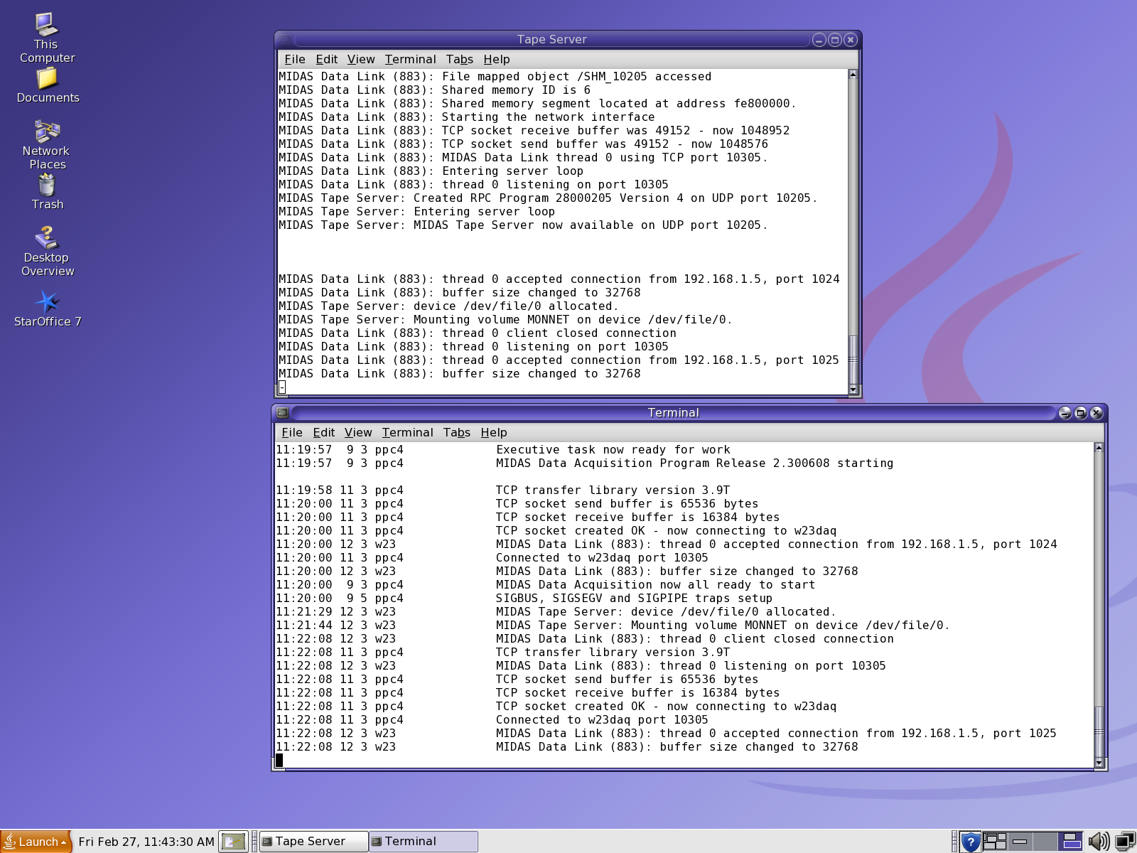 MIDAS Tape Server console ( /MIDAS/TapeServer/SunOS/master ) and MIDAS log (e.g. tail -f /MIDAS/log/27Feb26 ) - attachment 5