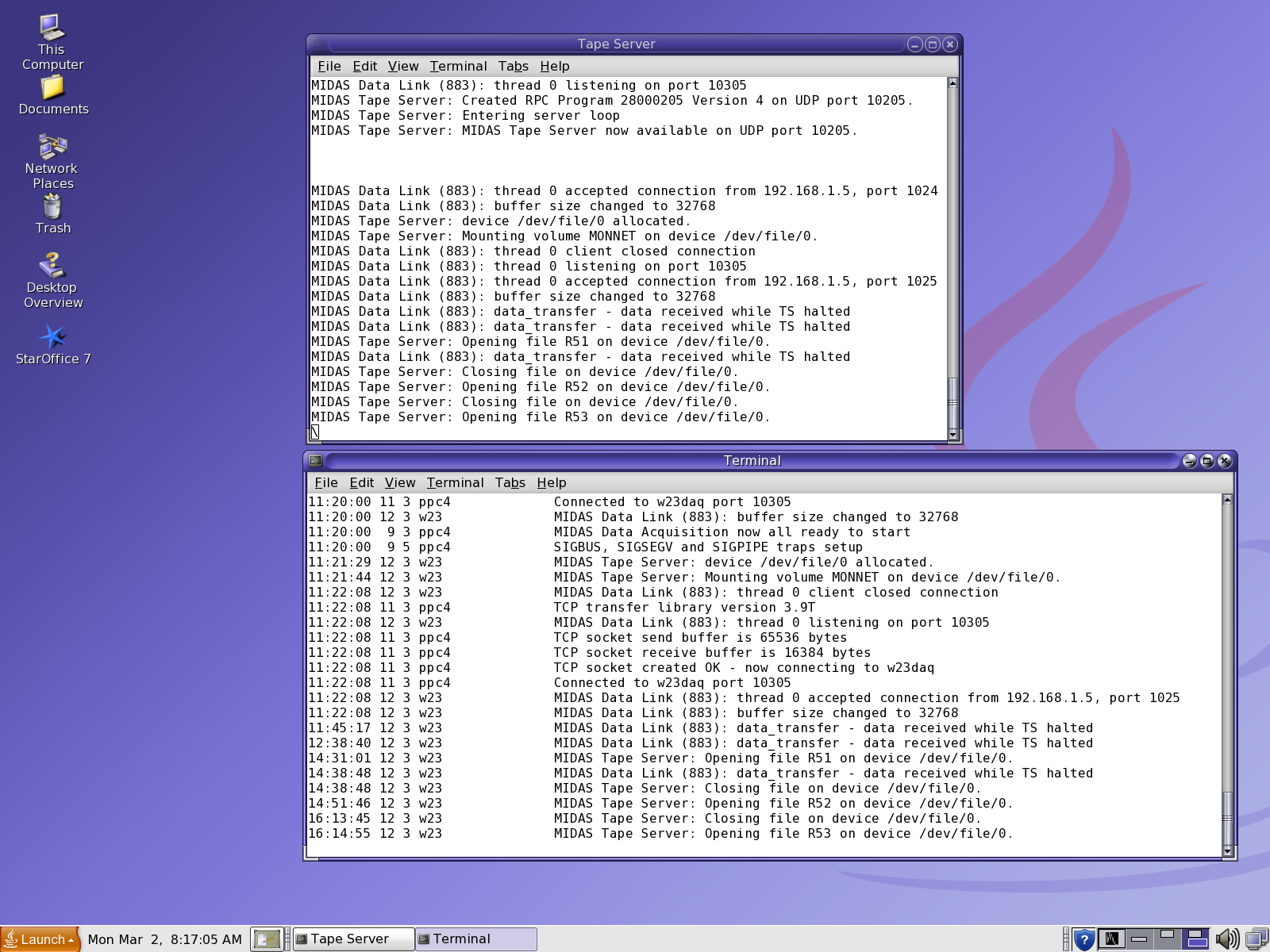 MIDAS Tape Server console ( /MIDAS/TapeServer/SunOS/master ) and MIDAS log (e.g. tail -f /MIDAS/log/27Feb26 ) - attachment 5